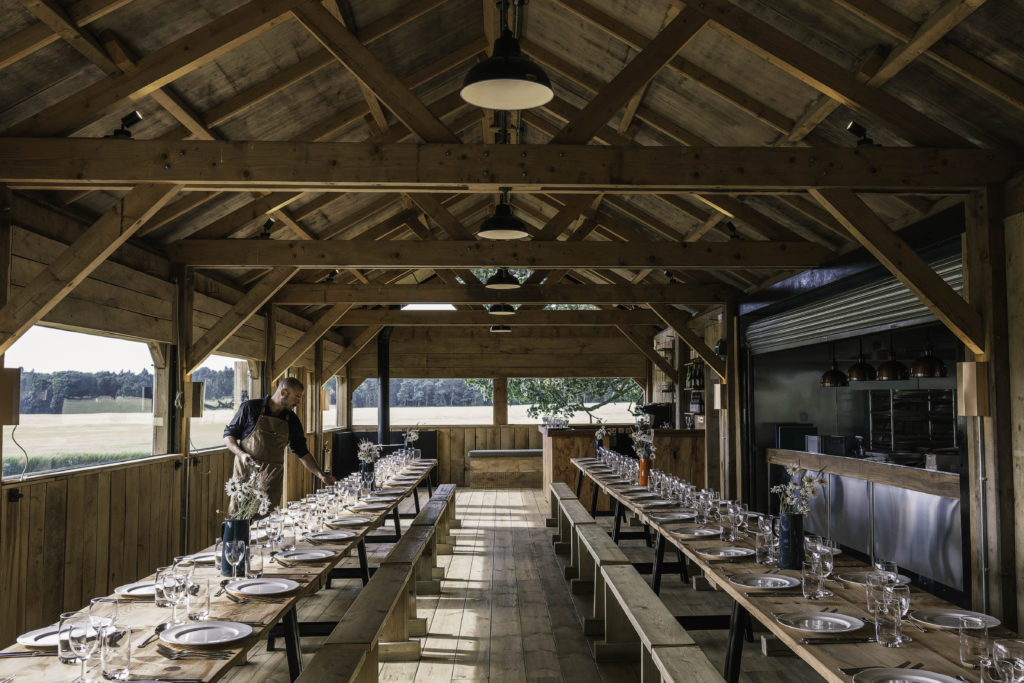 Set within the intimate surrounds of The Copse, our Farm Suppers bring people together around shared tables — a communal dining experience rooted in the rhythms of the land and the understated charm of the estate. With views across open parkland and bench seating that encourages conversation, the setting is relaxed, welcoming, and quietly memorable.
